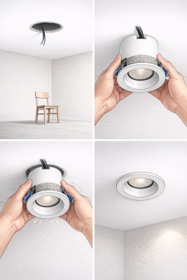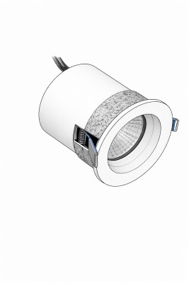 Brandwerende bescherming voor normale plafond spots. Door de opschuimende band ter hoogte van de klem en aan de bovenzijde zal deze opschuimen bij een brand, de spot kan zijn warmte kwijt door de opening aan de bovenzijde.