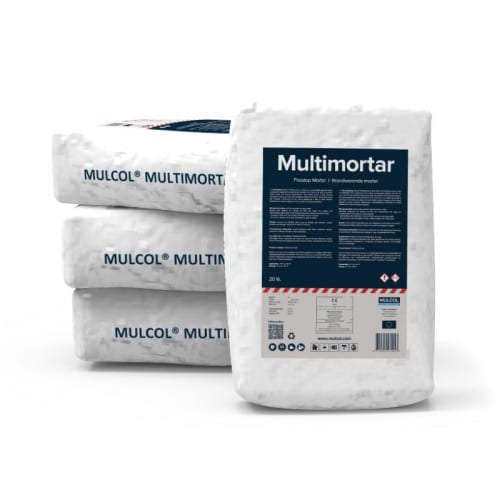 Brandwerende mortel Multimortar is een droog wit poeder, bestaande uit niet-organische verbindingen en perliet. Wanneer deze gemengd worden met water vormen de verbindingen een sterk thermische en isolerende brandwerende massa. Deze mortel voorkomt verspreiding van vuur en rook bij brand door brandwerende wanden en vloeren. Na het afdichten van de openingen met Multimortar behoud de wand of vloer een goede akoestische waarde. Multimortar maakt deel uit van het Mulcol® Penetration Seal System. De Multimortar kan in combinatie met de Multicollar Slim, Multiwrap en Multimastic FB brandschotten toegepast worden.